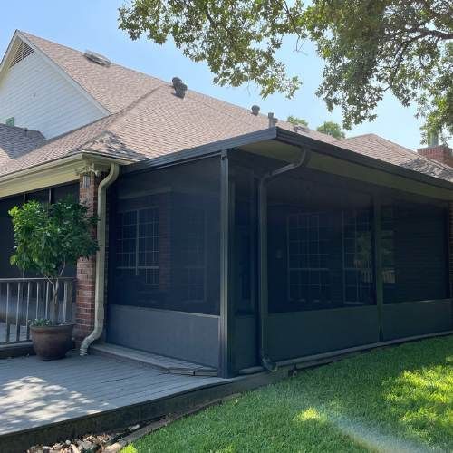 We are committed on providing top quality patio enclosure services at a reasonable cost for both residential and commercial properties here in the Dallas/Fort Worth Texas area. Our mainframe for our screen rooms come in a .048″ extruded 2×2 aluminum, available in four colors (White, Tan, Champagne, and Bronze, our most popular.) Below are just a few of the patio enclosure services that we offer to both homeowners and business owners alike.